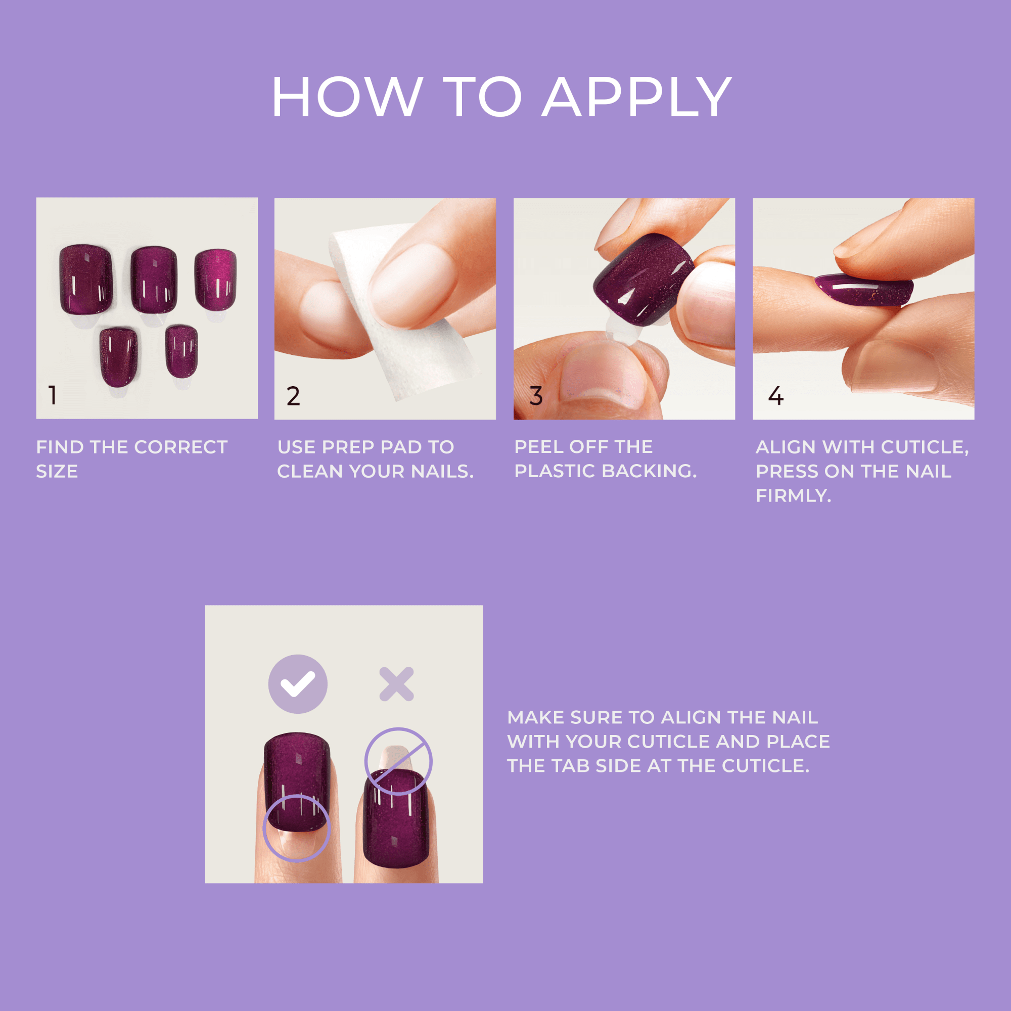 - The EASIEST manicure with pre-applied adhesive – just peel. press & go