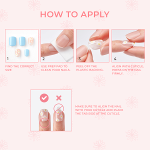- Nail kit contains 30 perfectly manicured press on nails. prep pad. mini nail file. and manicure stick